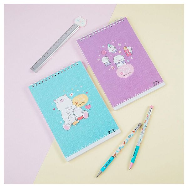 - Тип крепления. Блокнот на пружине (или спирали) позволяет легко разворачивать его на 360 градусов и вырывать листы. Модели на сшивке или склейке имеют более классический и строгий вид.