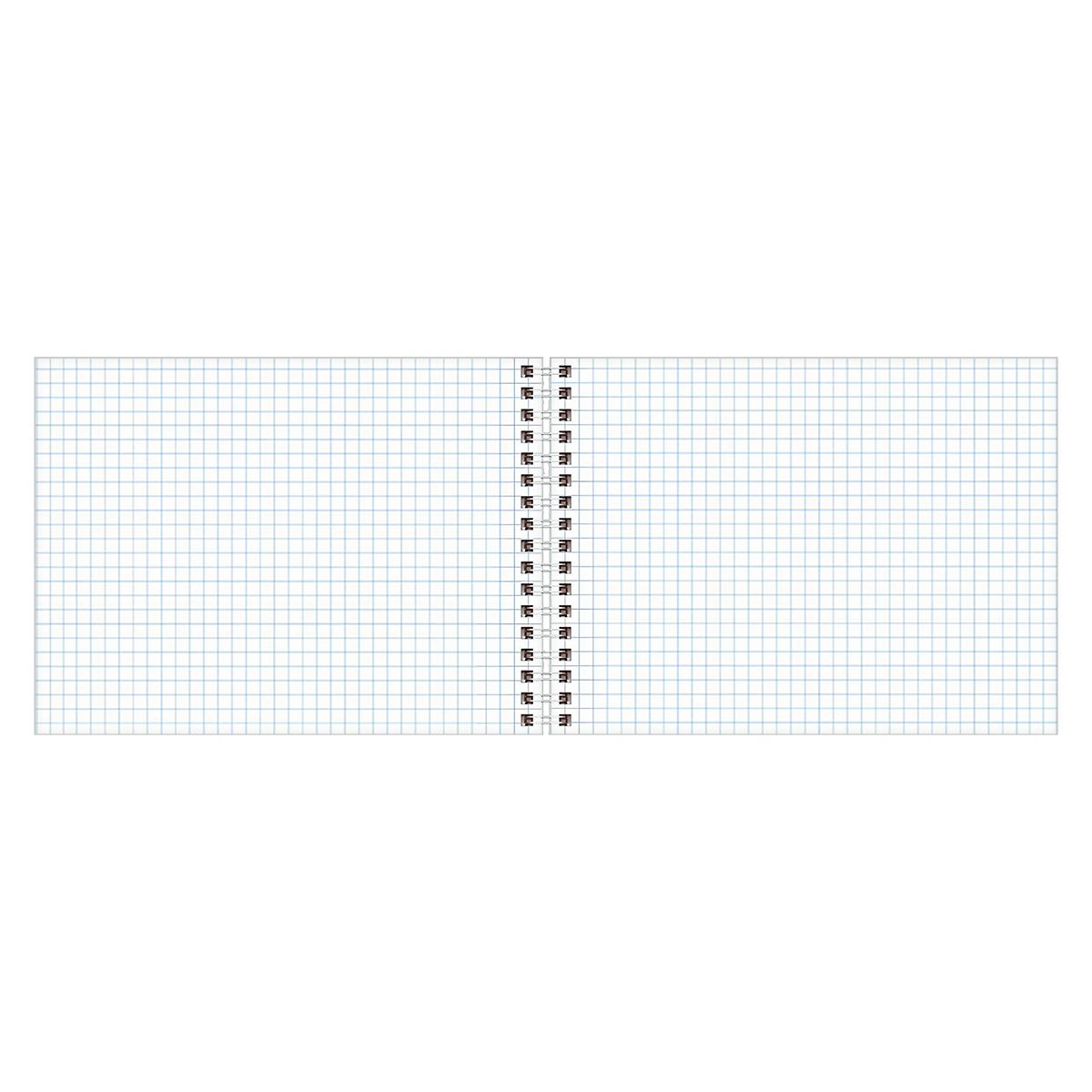 Состоит из 60 листов размером 148*200 мм офсетной бумаги белого цвета плотностью 60 г/м2. Линовка – клетка. Обложка – мелованный картон. Гребень позволяет легко вынимать листы при необходимости.