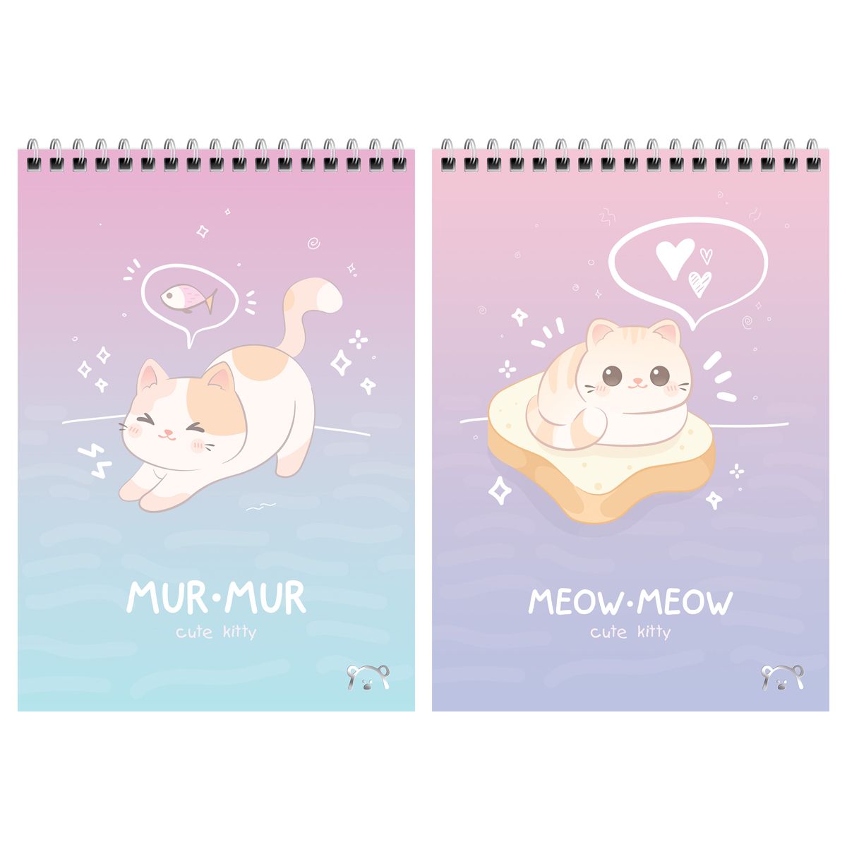 Блокнот А5 60л. на гребне MESHU "Cute kitty", пластиковая обложка