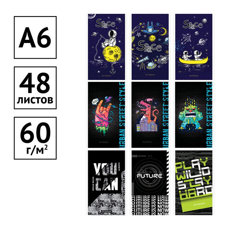 Блокнот А6 48л. на скрепке ArtSpace "Boys trend. Микс"