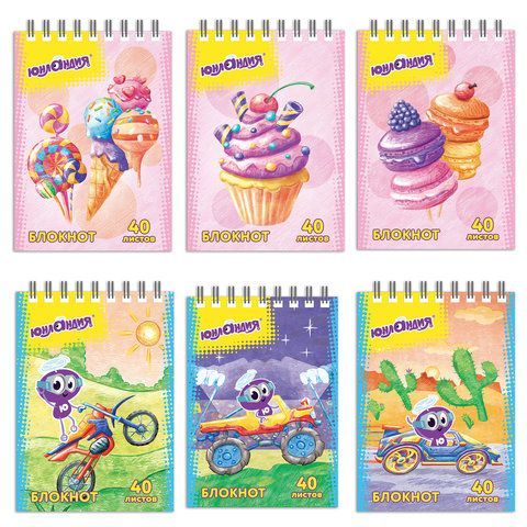 Блокнот МАЛЫЙ ФОРМАТ (75х105 мм) А7, 40 л., гребень, картон, клетка, ЮНЛАНДИЯ, "ЮНЛАНДИК"/"СЛАДОСТИ", 129858