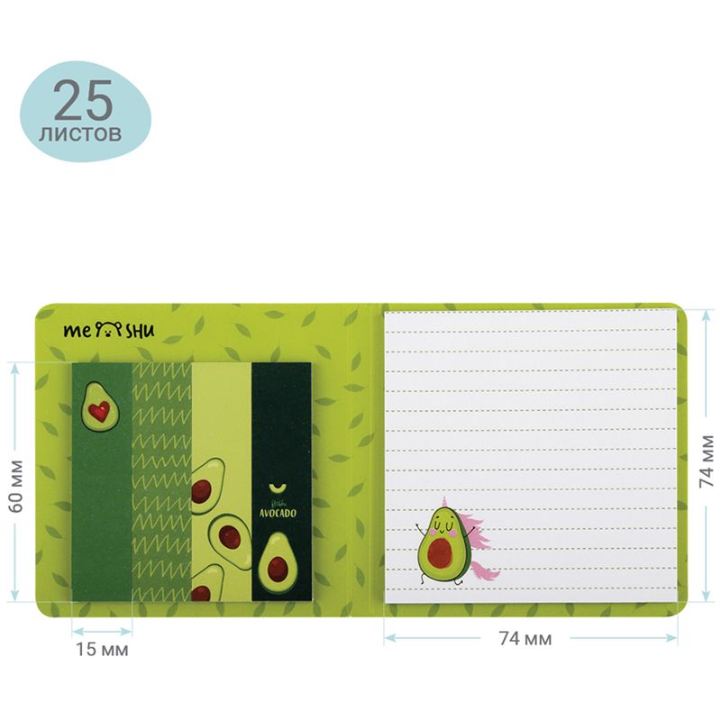Флажки-закладки и самоклеящиеся блоки в наборе MESHU "Avocado", 74*74мм, 60*15мм, 25л., европодвес