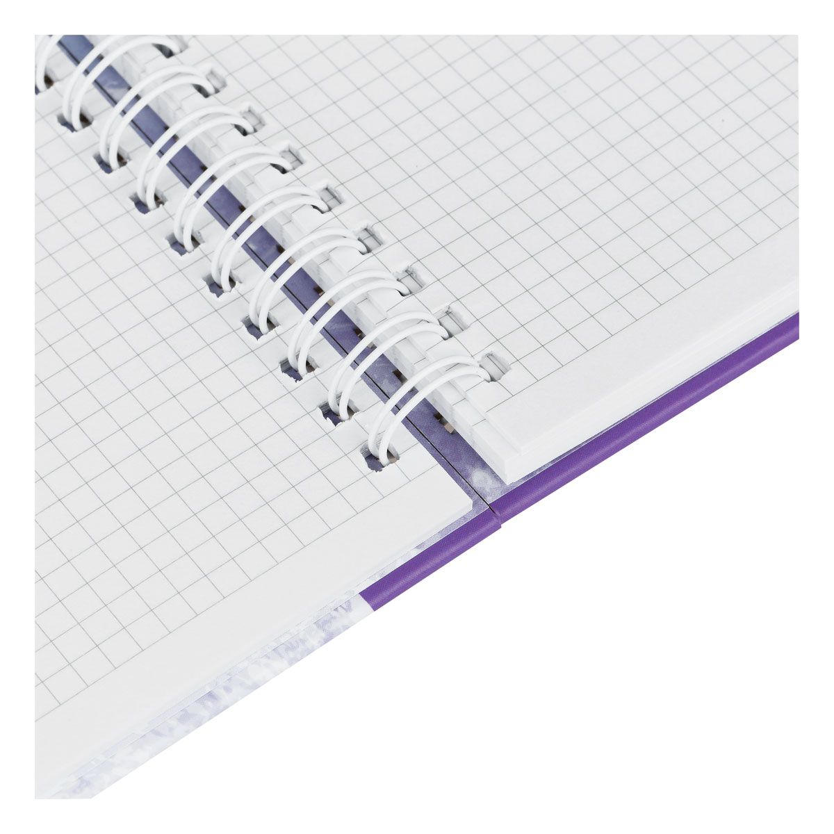 Внутри — 96 листов офсетной бумаги плотностью 65 г/м2, которая подходит для письма шариковыми, гелевыми и капиллярными ручками — записи не просвечиваются. Внутренний блок в клетку напечатан с применением пантонной краски.