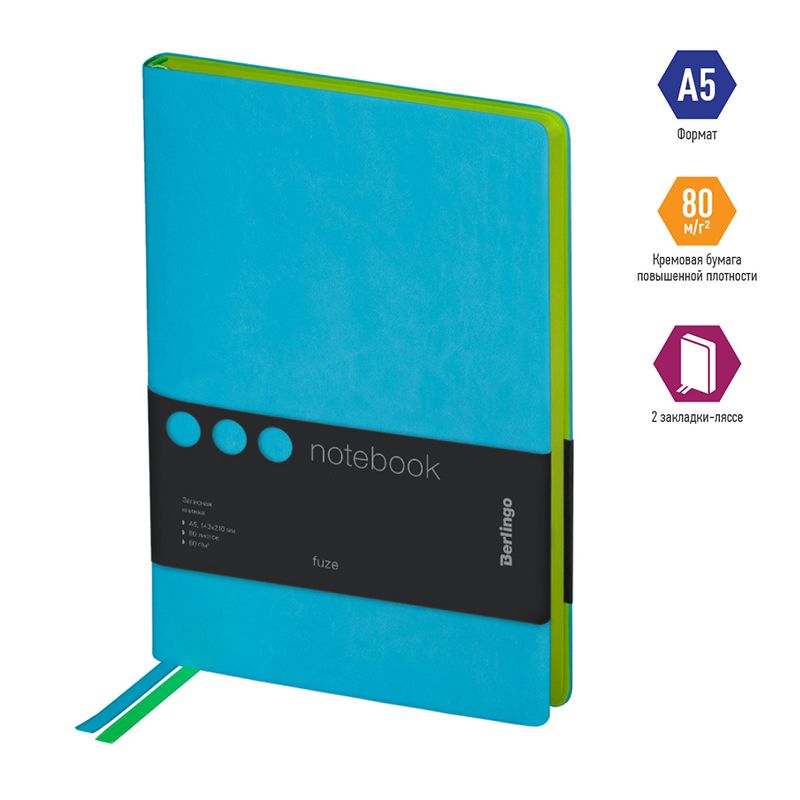 Записная книжка А5 80л., кожзам, Berlingo "Fuze", цветной срез, бирюзовый