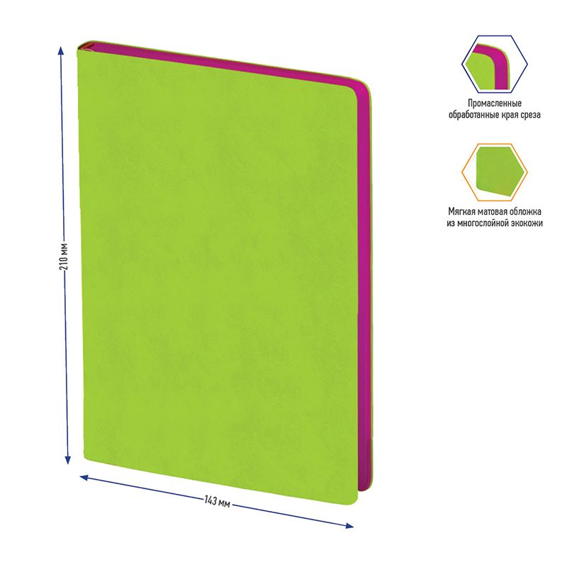 Записная книжка А5 80л., кожзам, Berlingo "Fuze", цветной срез, салатовый