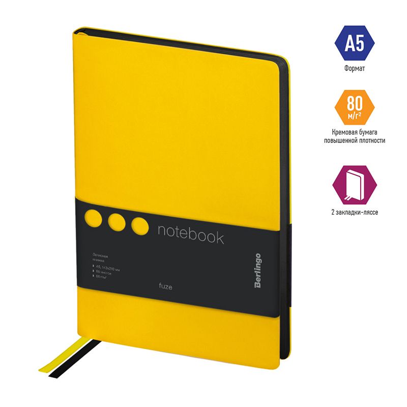 Записная книжка А5 80л., кожзам, Berlingo "Fuze", цветной срез, желтый