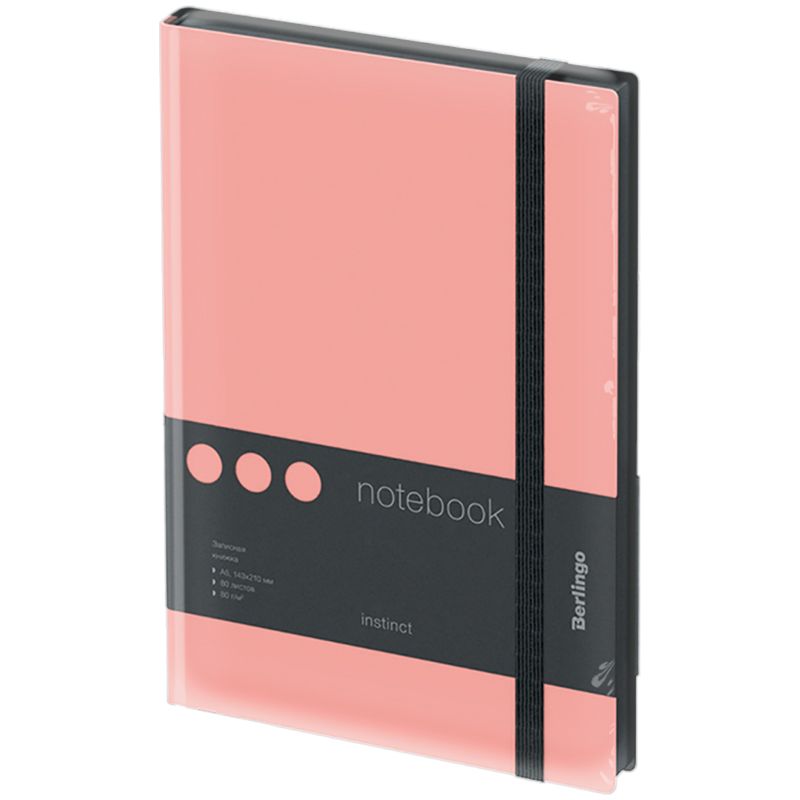 Записная книжка А5 80л., кожзам, Berlingo "Instinct", черный срез, черный/фламинго, с резинкой