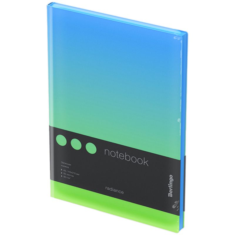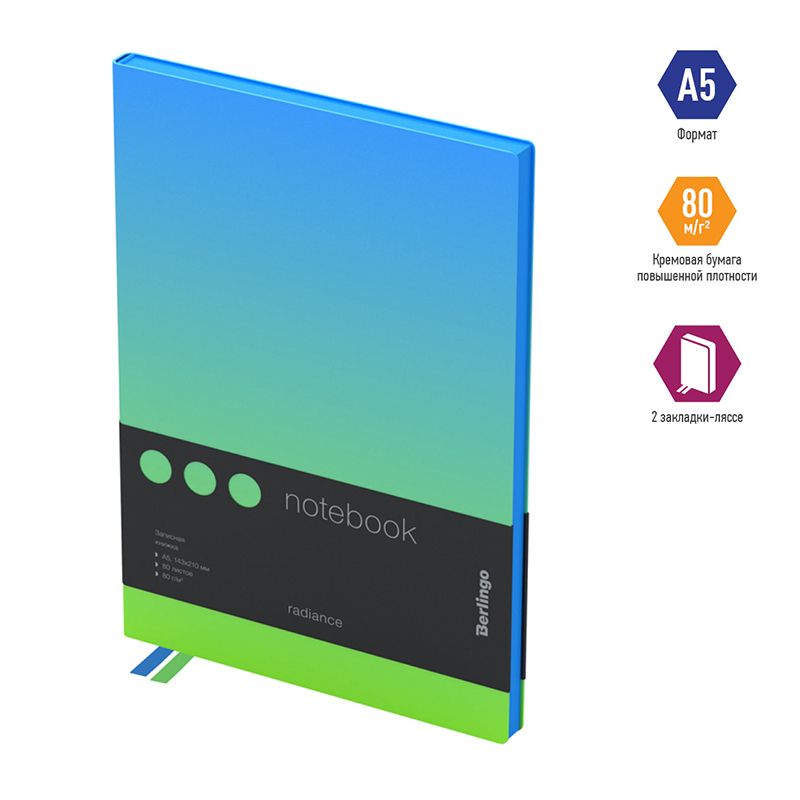 Записная книжка А5 80л., кожзам, Berlingo "Radiance", черный срез, голубой/зеленый градиент
