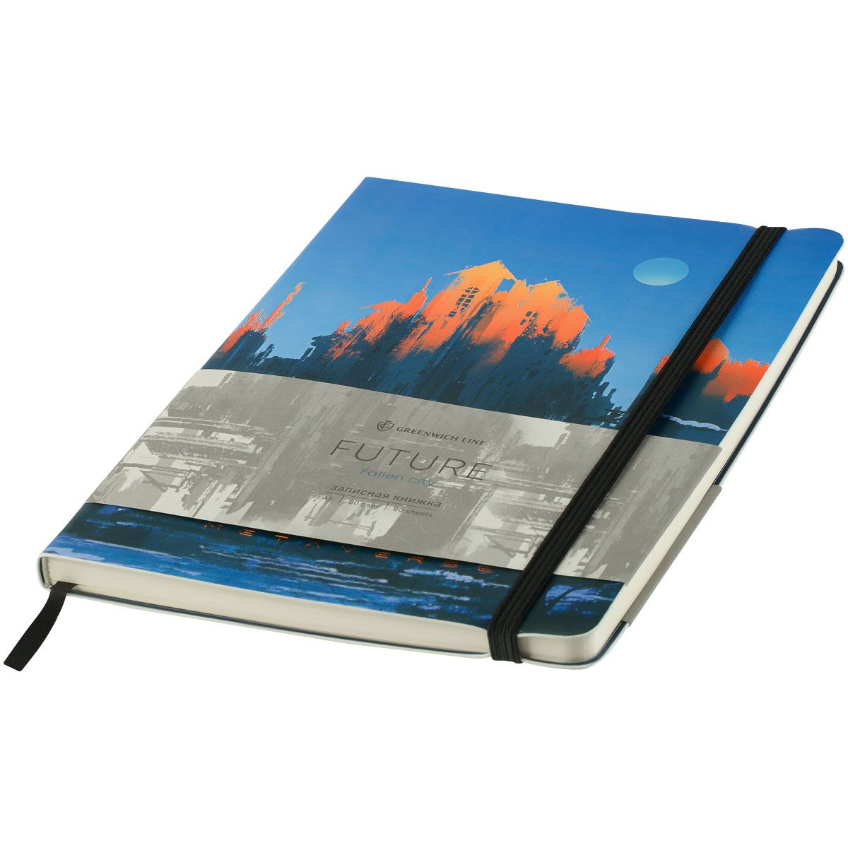 Записная книжка А5 80л. ЛАЙТ, кожзам, Greenwich Line "Future. Fallen city", с резинкой, тиснение фольгой, блок в линию