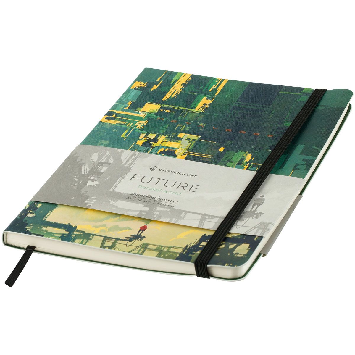 Записная книжка А5 80л. ЛАЙТ, кожзам, Greenwich Line "Future. Parallel world", с резинкой, тиснение фольгой, блок в линию
