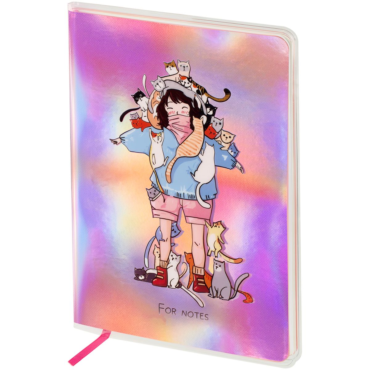Записная книжка А5 80л., ЛАЙТ, кожзам, MESHU "My cats", съемная пластиковая обложка с дизайном, голография, блок в линию