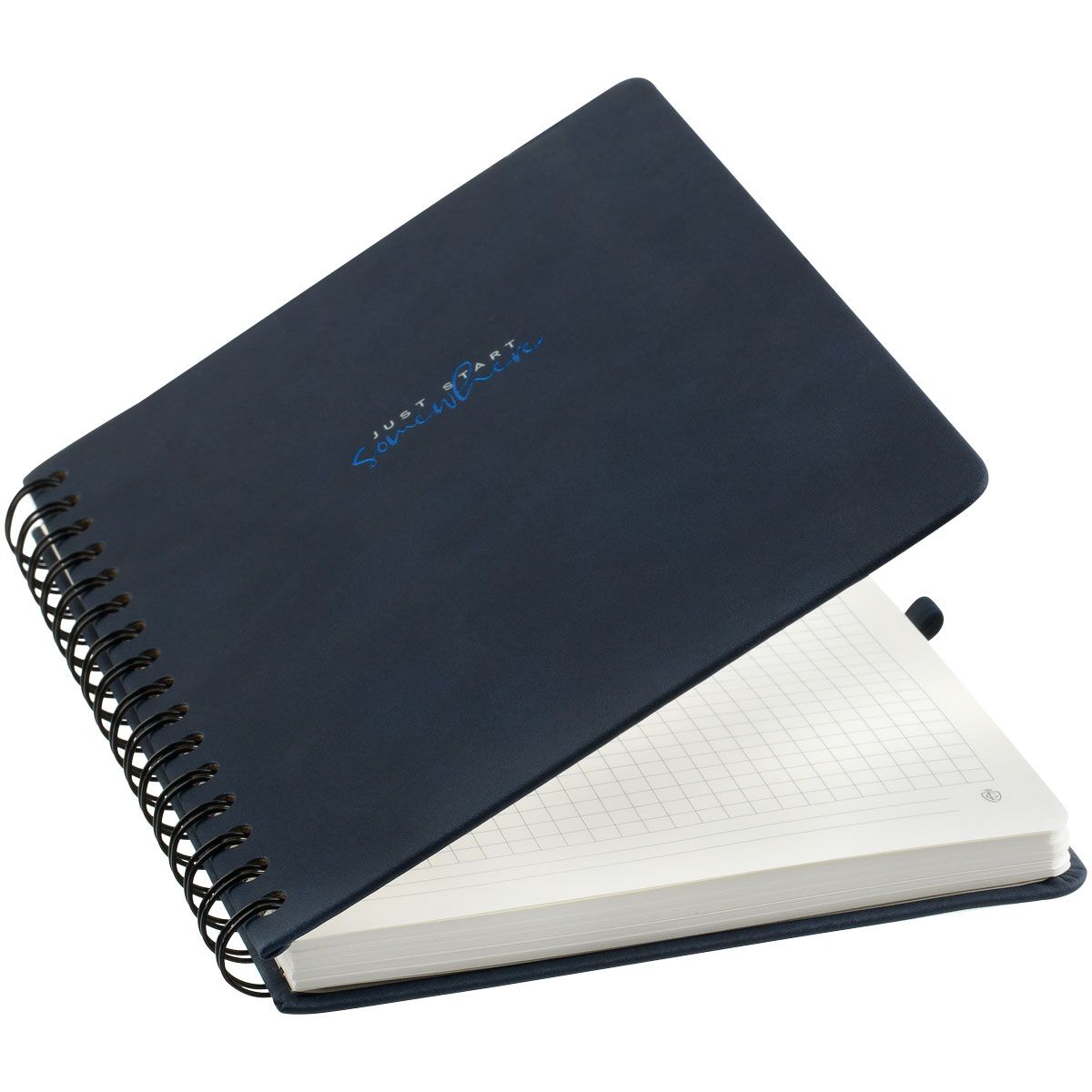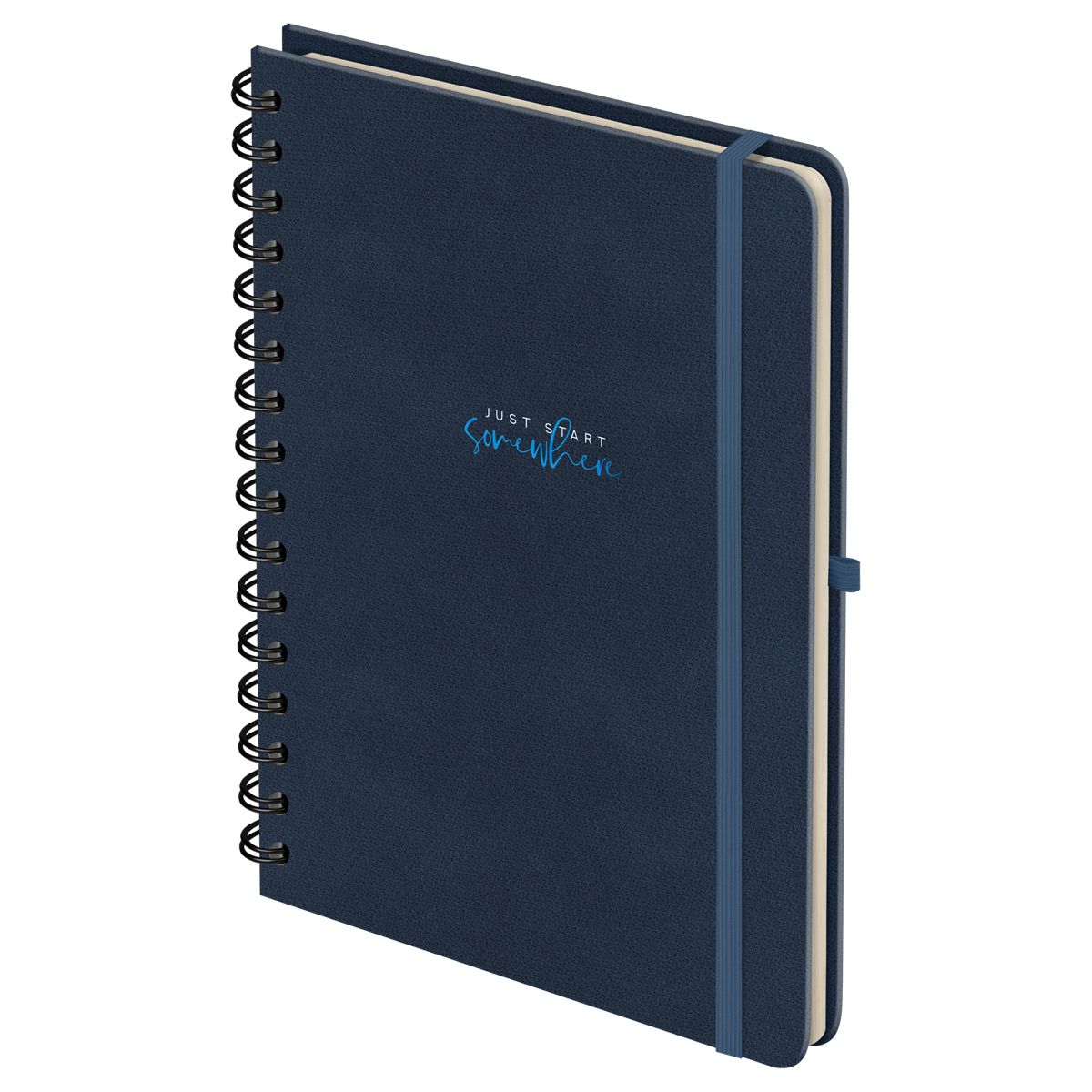 Записная книжка А5 96л., кожзам, на гребне, Greenwich Line "Just start. Blue", твердая обложка, тиснение фольгой, с петлей для ручки