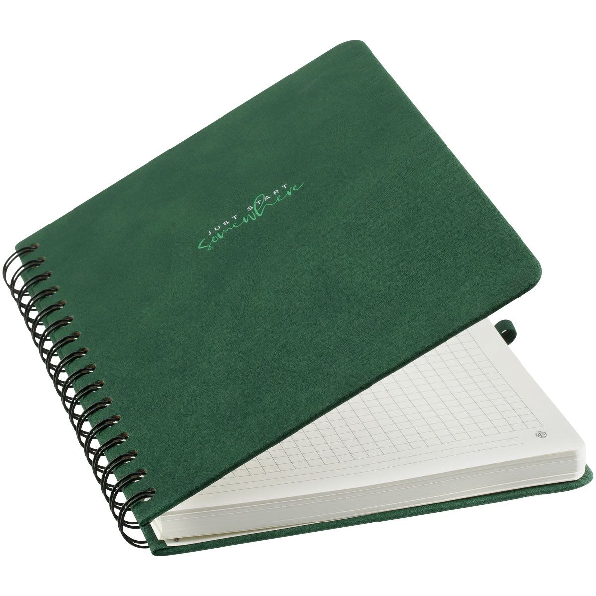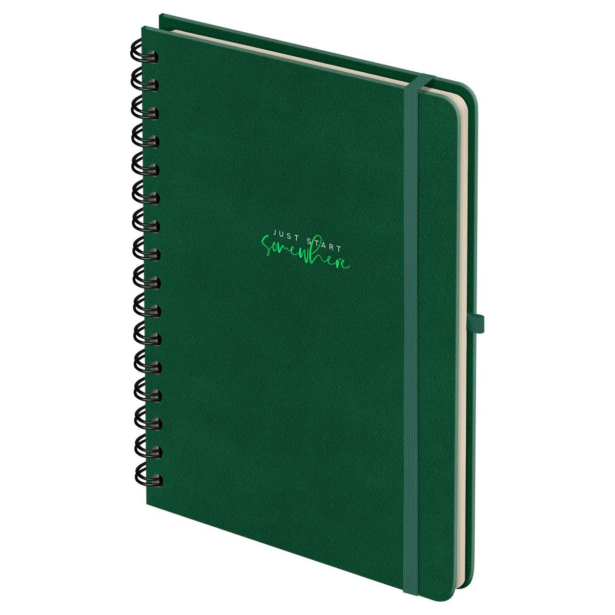 Записная книжка А5 96л., кожзам, на гребне, Greenwich Line "Just start. Green", твердая обложка, тиснение фольгой, с петлей для ручки