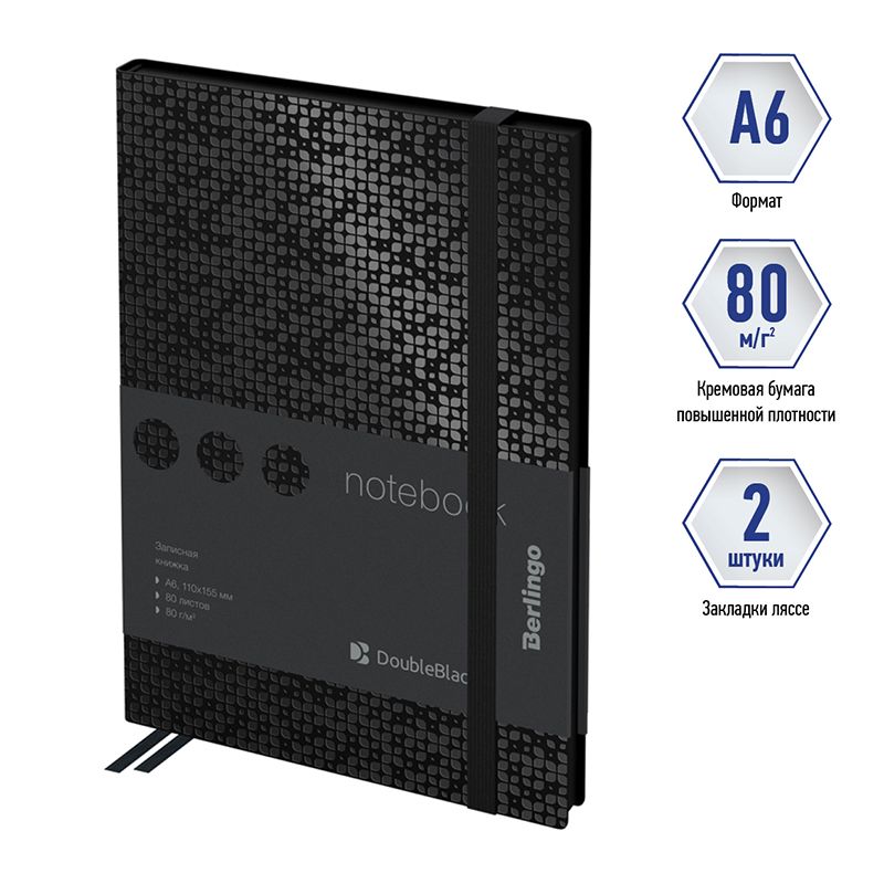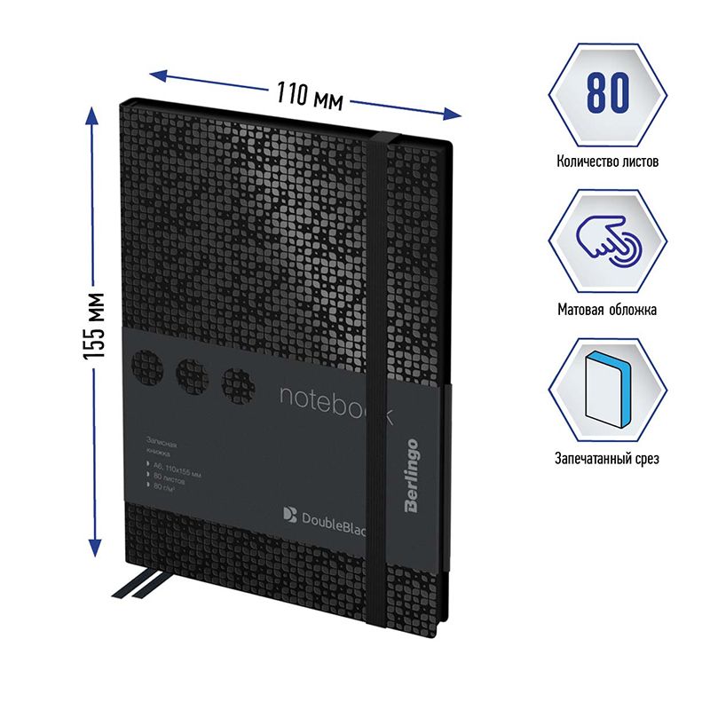 Записная книжка А6 80л., кожзам, Berlingo "DoubleBlack", черный срез, черная, с рисунком
