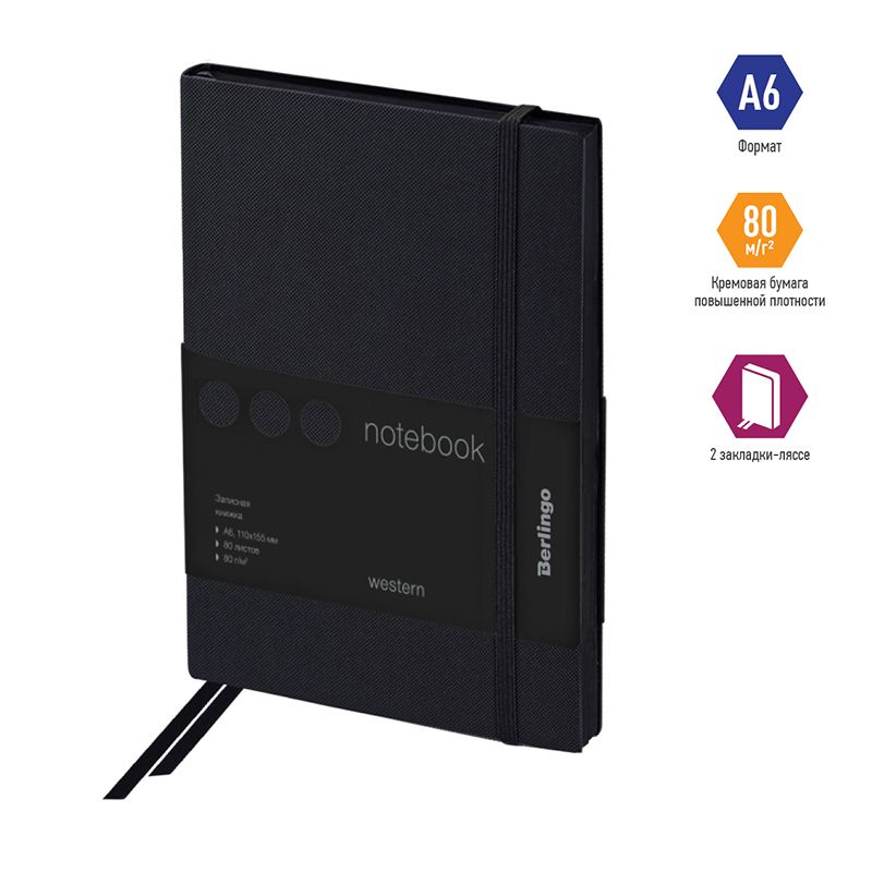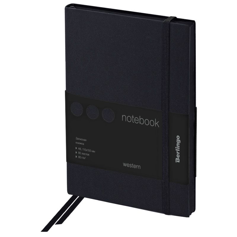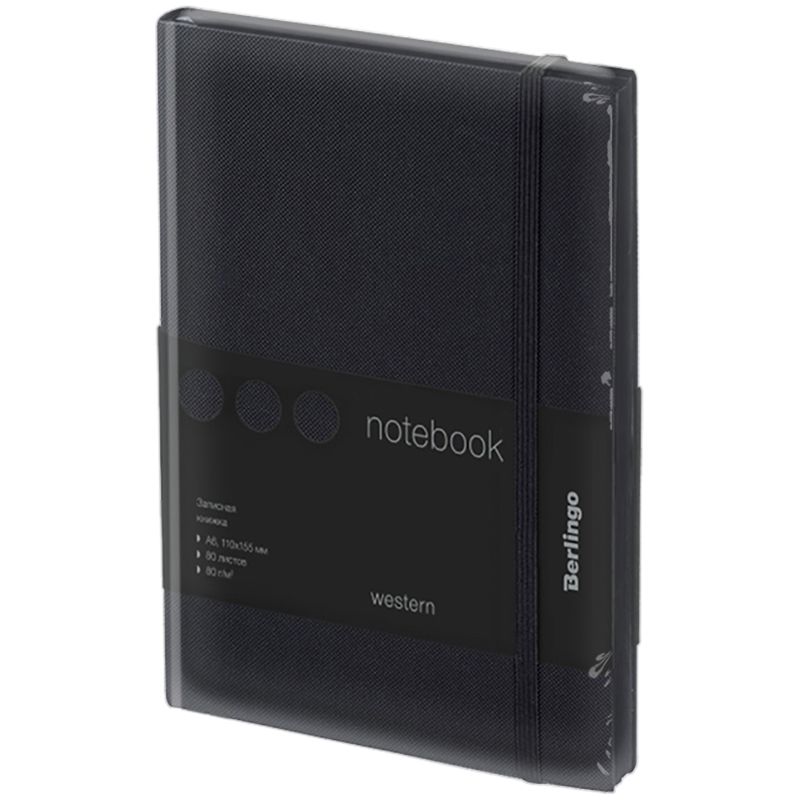 Записная книжка А6 80л., кожзам, Berlingo "Western", черный срез, с резинкой, черный