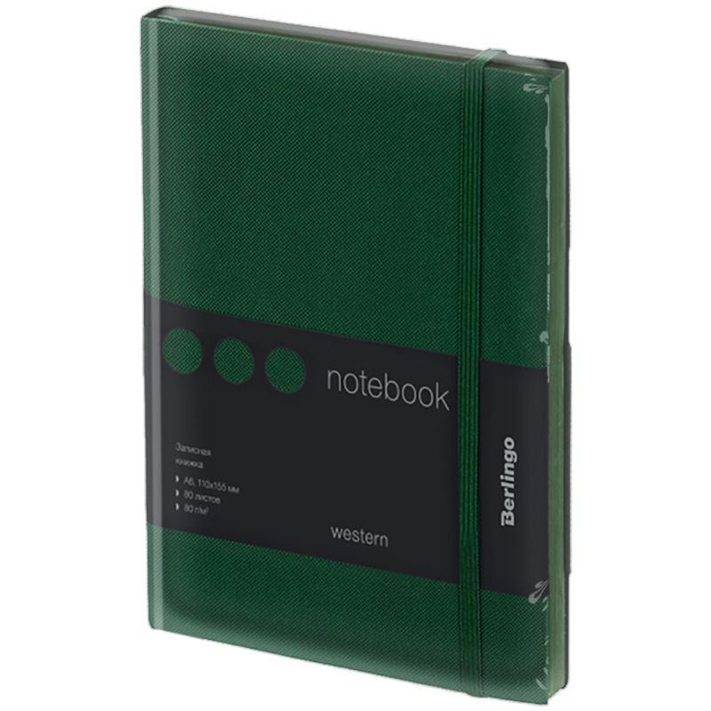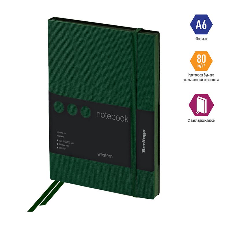Записная книжка А6 80л., кожзам, Berlingo "Western", с резинкой, зеленый