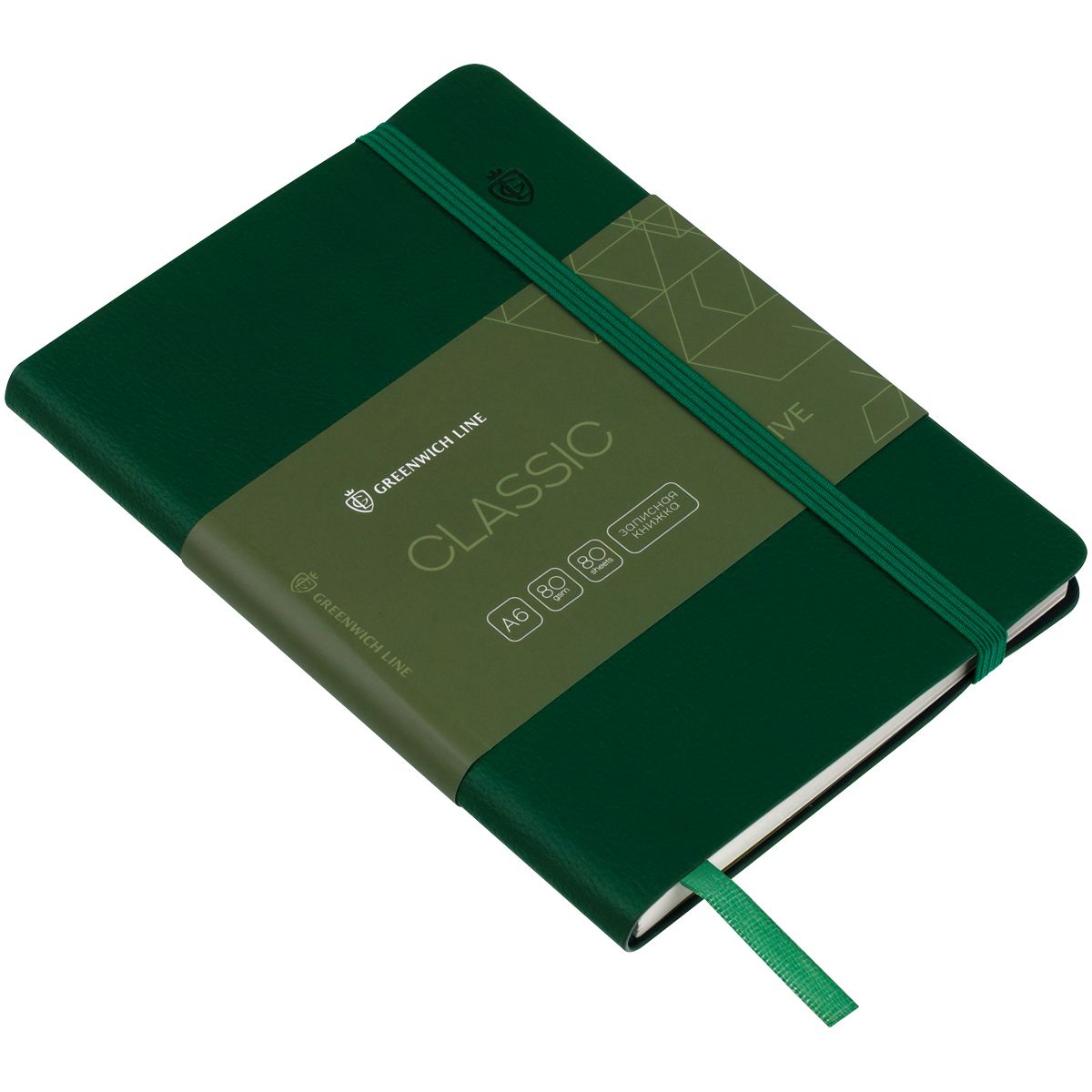 Записная книжка А6 80л. ЛАЙТ, кожзам, Greenwich Line "Classic. Olive", с резинкой, фактурное тиснение, блок в клетку