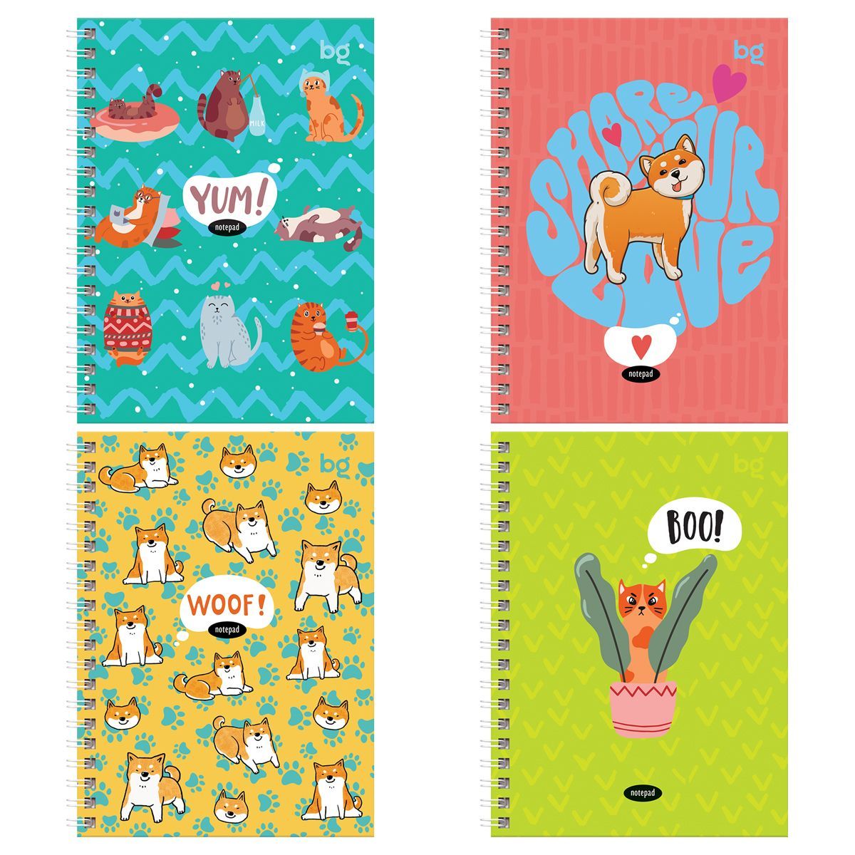 Записная книжка А6 96л., на гребне BG "Веселые друзья", матовая ламинация, выб. лак, твердая обложка