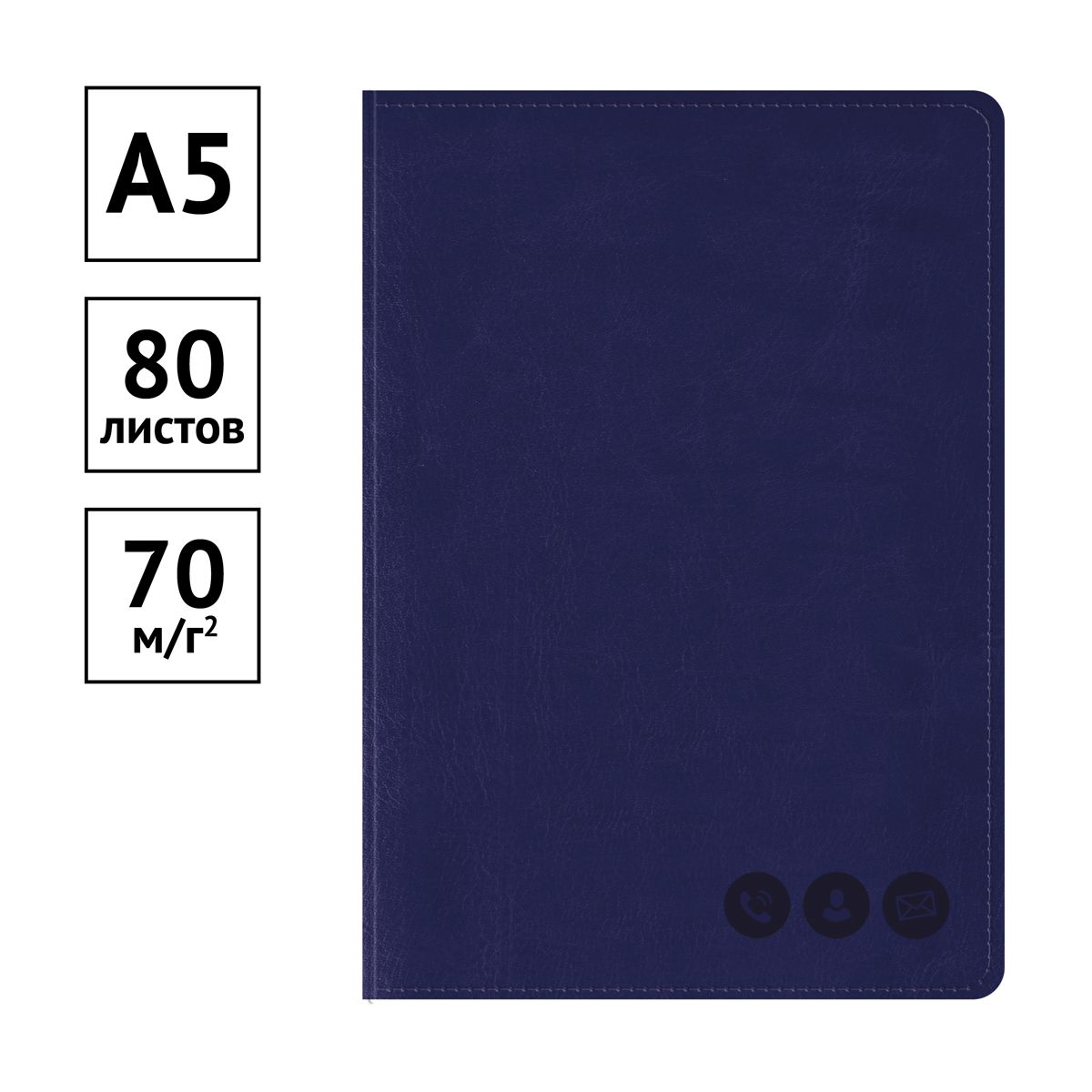 Телефонная книга А5, 80л., кожзам, OfficeSpace "Nebraska" темно-синий, с вырубкой