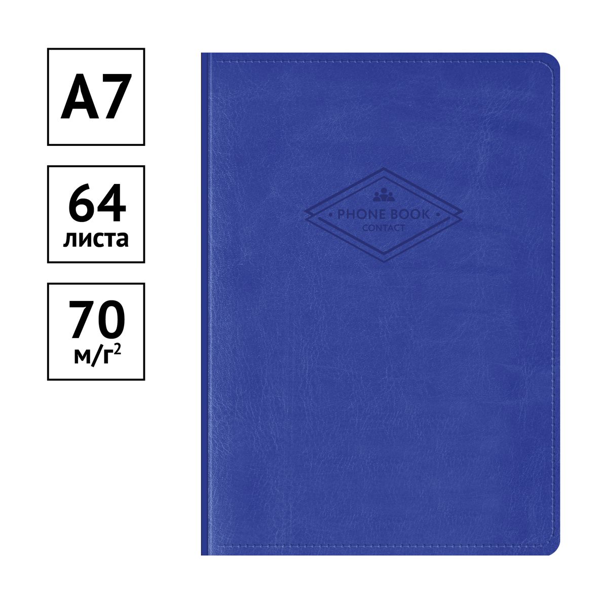 УЦЕНКА - Телефонная книга А7, 64л., кожзам, OfficeSpace "Winner" синий, с вырубкой
