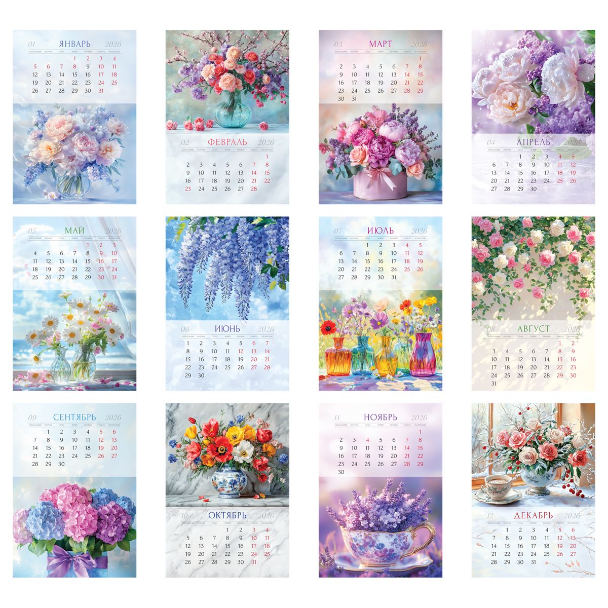 Календарь настенный перекидной на гребне, 340*480 мм 6л. BG "Прекрасные цветы", 2026г.
