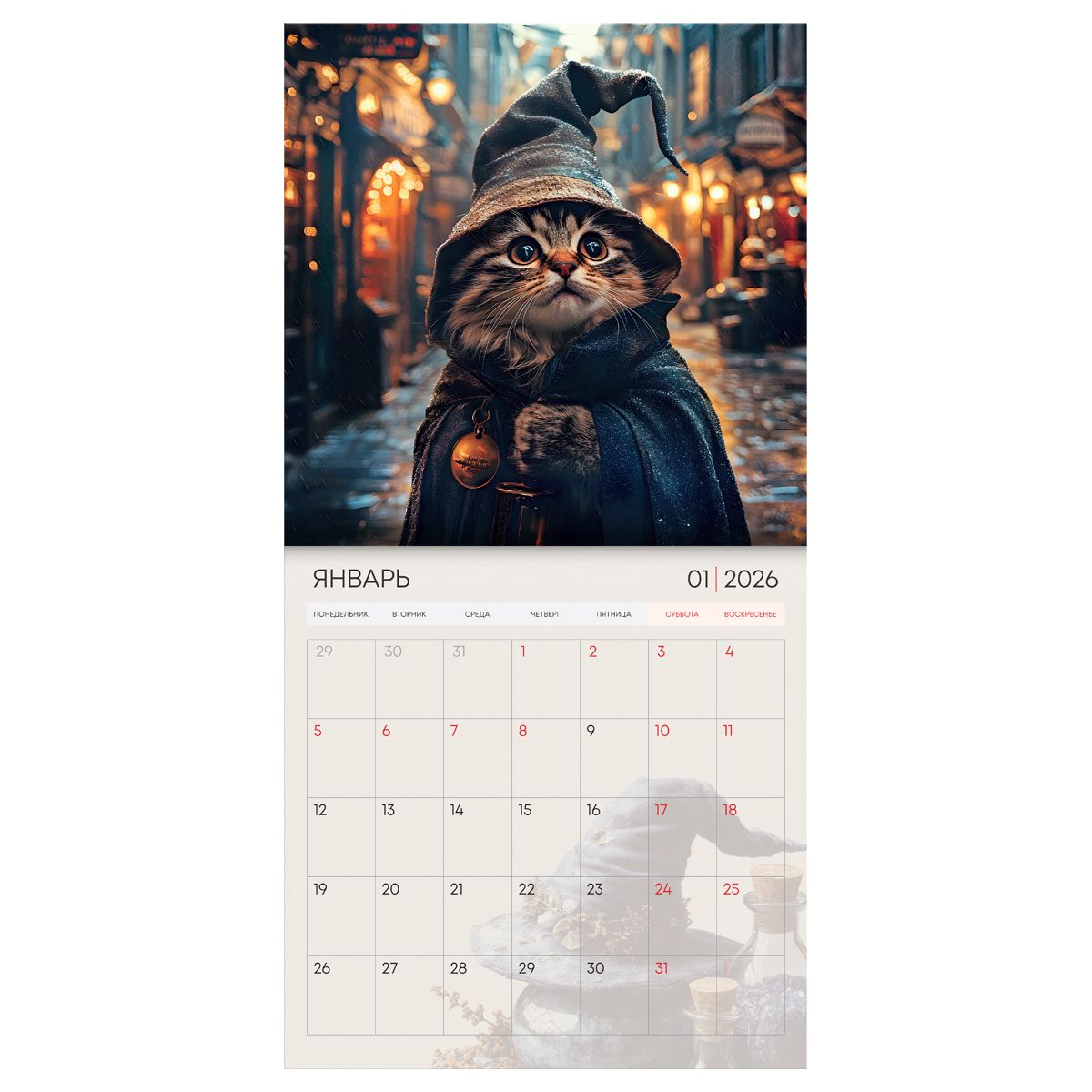 Календарь настенный перекидной на скрепке, 230*230 мм 12л. BG "Коты-волшебники", 2026г.