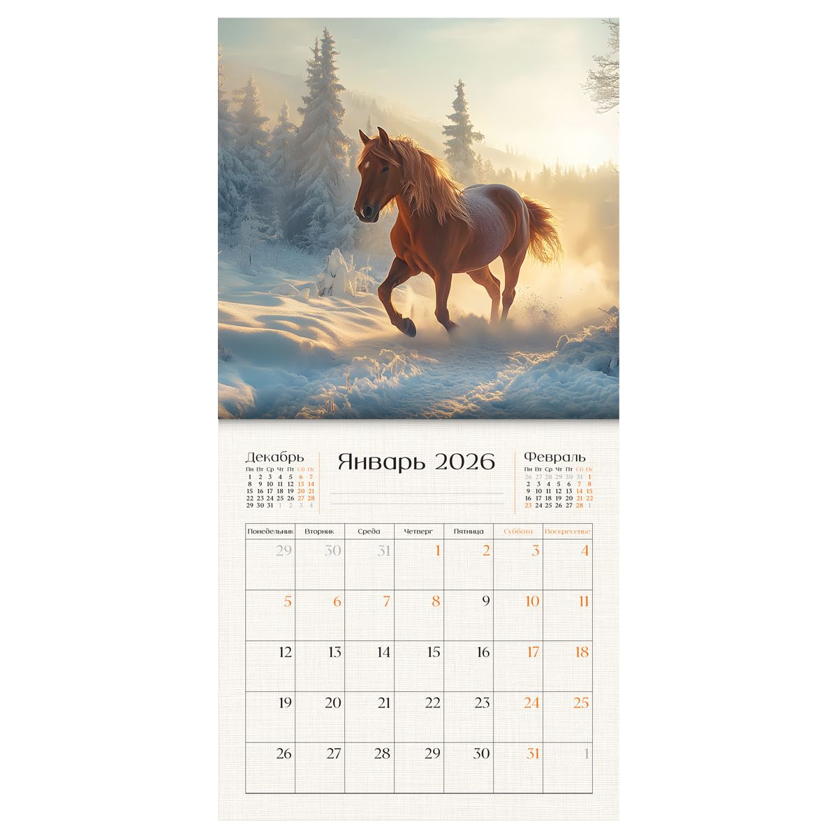 Календарь настенный перекидной на скрепке, 290*290 мм 12л. BG "Мир лошадей", 2026г.
