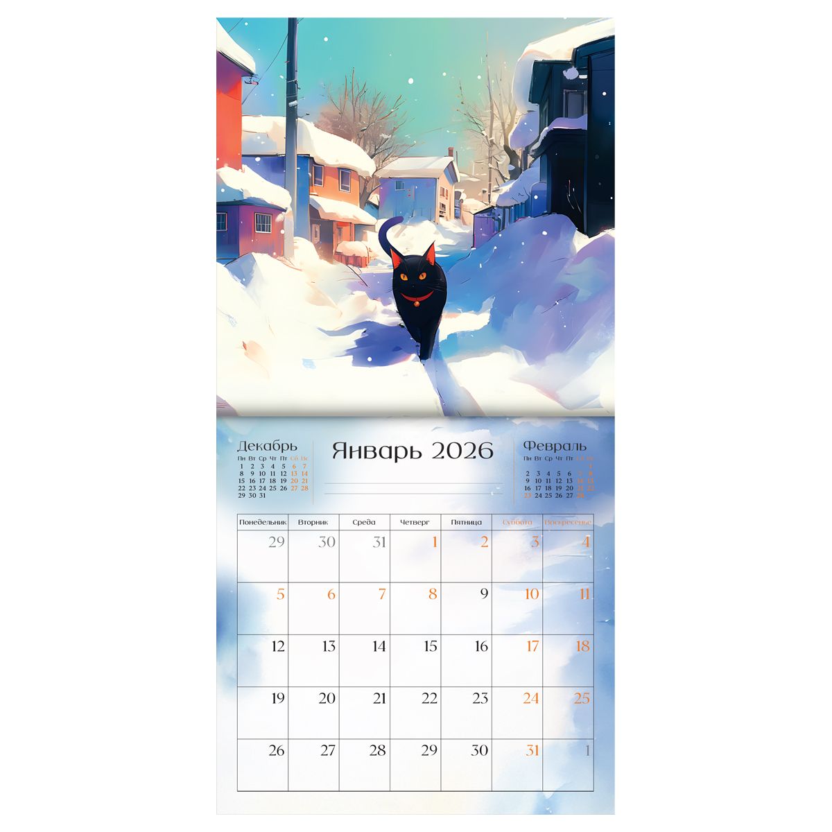 Каждый из 12 месяцев оформлен уникальными иллюстрациями, что создаёт вдохновляющую атмосферу. Оптимальный размер календаря позволяет легко разместить его в помещении, а надежная скрепка обеспечивает простоту в использовании. Индивидуальная упаковка — пакет.
