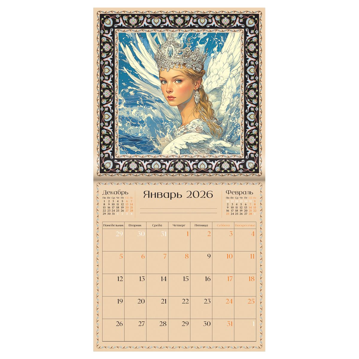 Каждый из 12 месяцев оформлен уникальными иллюстрациями, что создаёт вдохновляющую атмосферу. Оптимальный размер календаря позволяет легко разместить его в помещении, а надежная скрепка обеспечивает простоту в использовании. Индивидуальная упаковка — пакет.