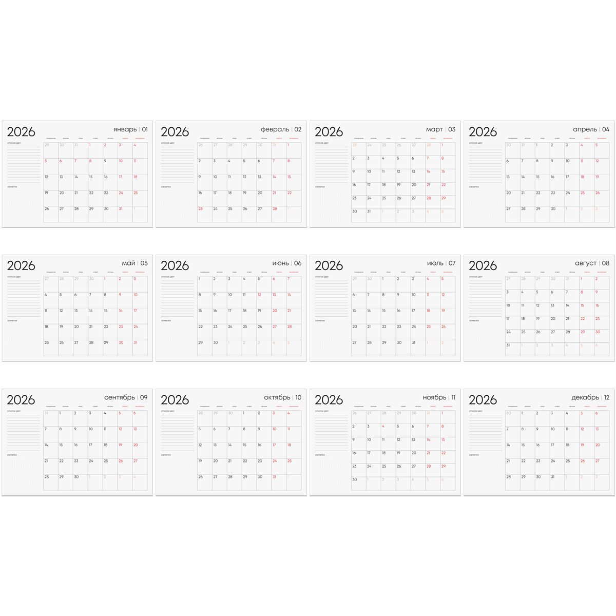 Календарь-планер настенный перекидной на гребне, А3, 12л. BG "Минимализм", 2026г.