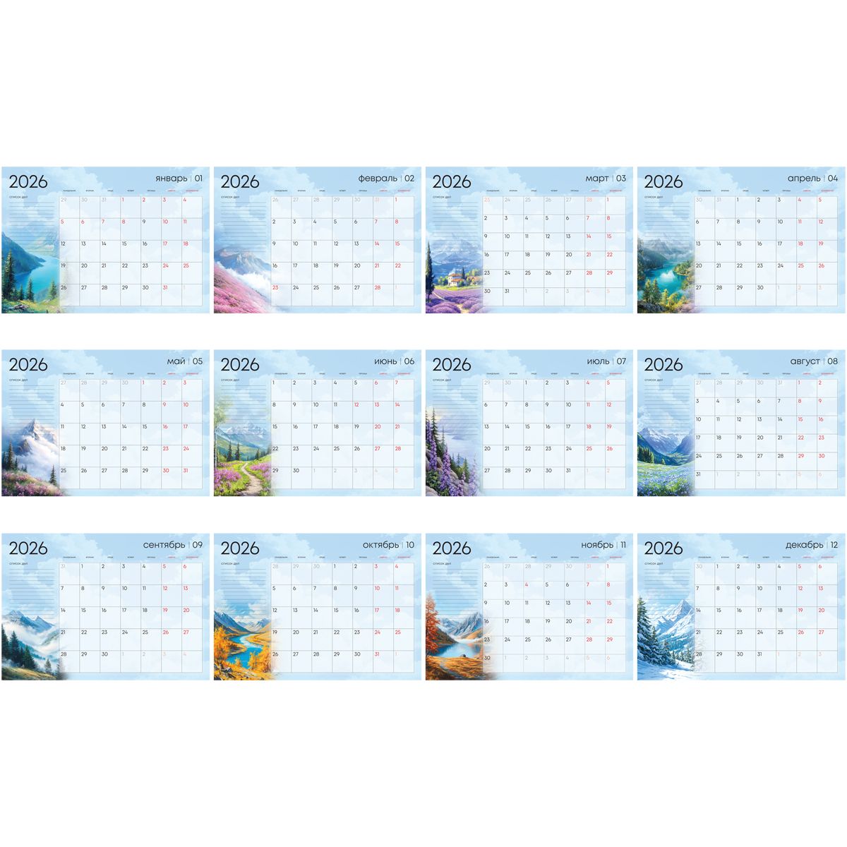 Календарь-планер настенный перекидной на гребне, А3, 12л. BG "Природа", 2026г.