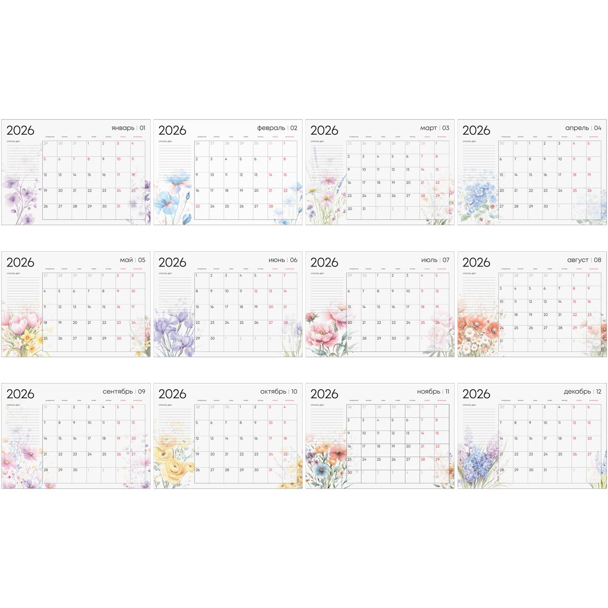 Календарь-планер настенный перекидной на гребне, А3, 12л. BG "Цветы", 2026г.
