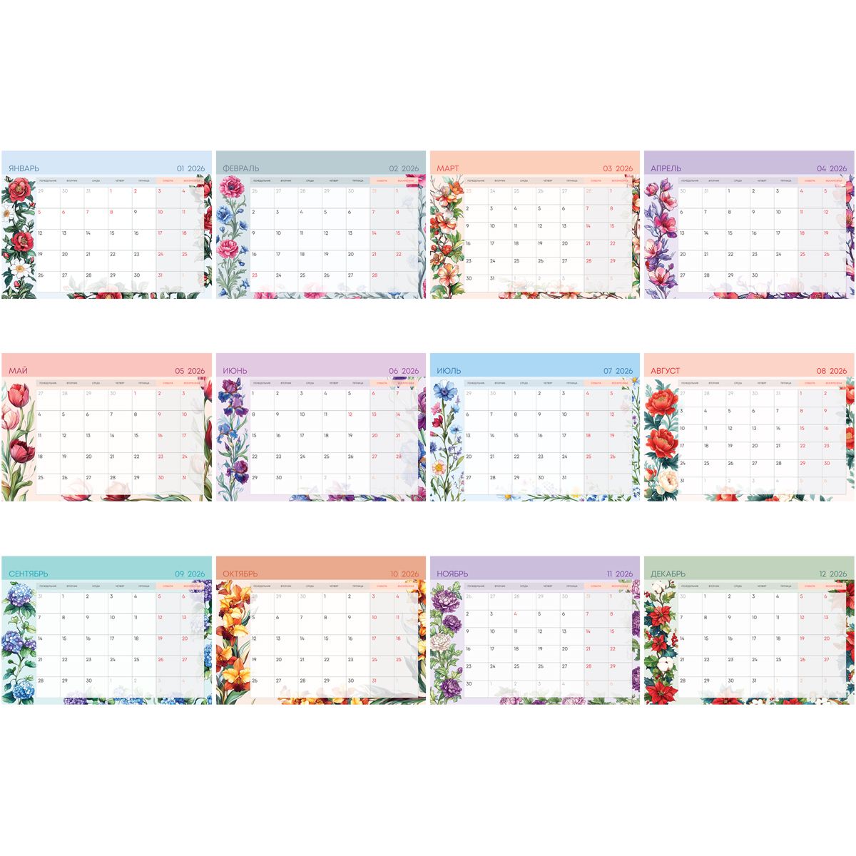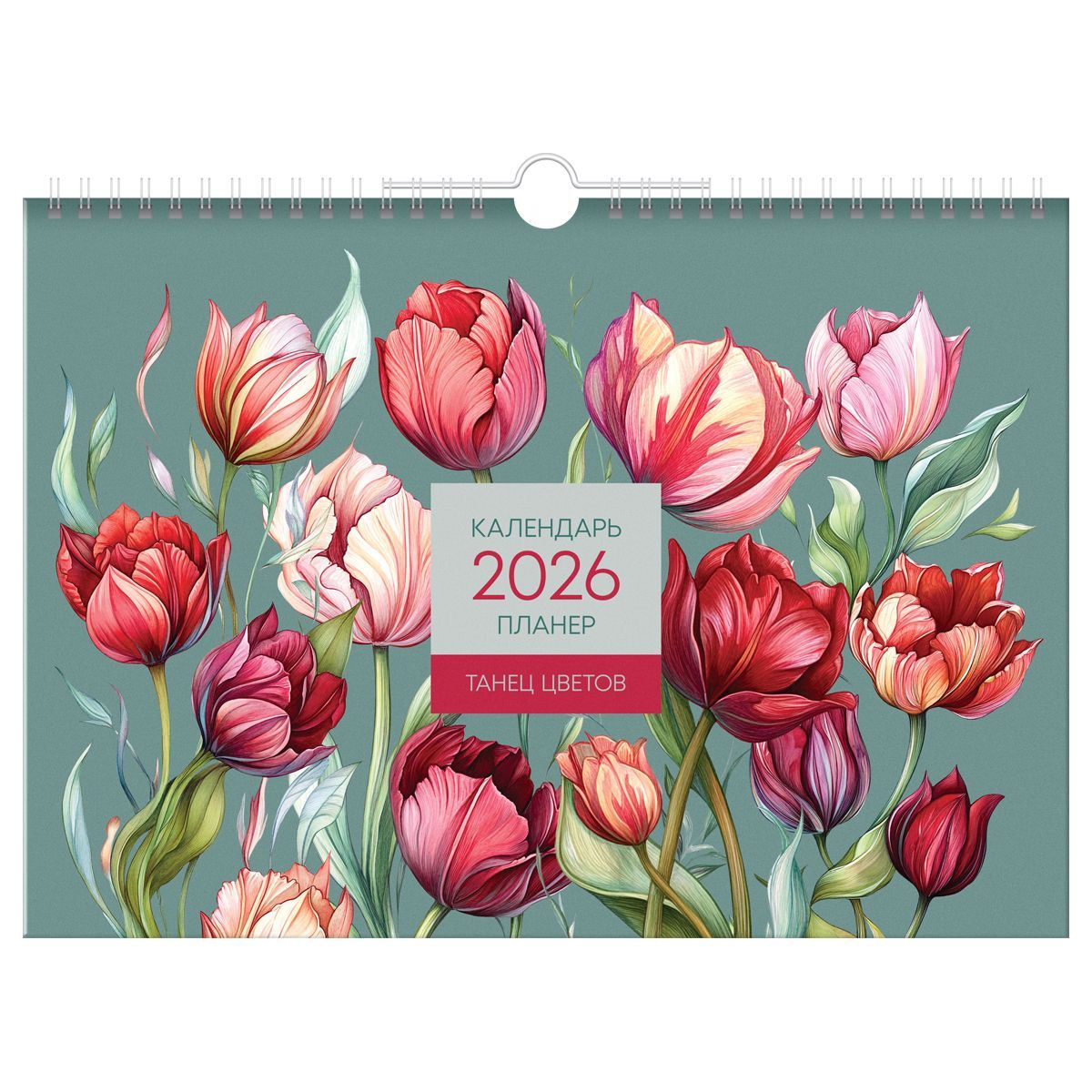 Календарь-планер настенный перекидной на гребне, А4, 12л. BG "Цветы", 2026г.