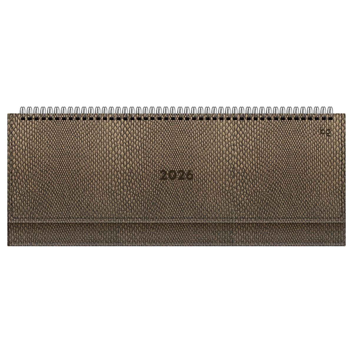 Приятная на ощупь твёрдая обложка цвета хаки изготовлена из высококачественной экокожи под рептилию. Модная фактура и насыщенные оттенки создают потрясающий визуальный эффект. Блинтовое тиснение года и бренда придаёт планингу элегантный вид. Тип скрепления «гребень» делает его удобным в использовании, позволяя легко перелистывать страницы и делать записи.