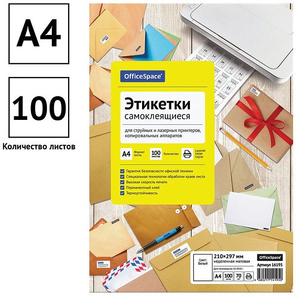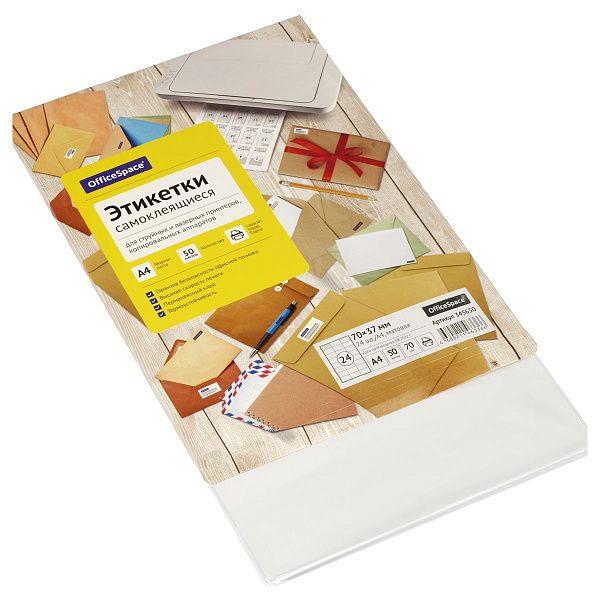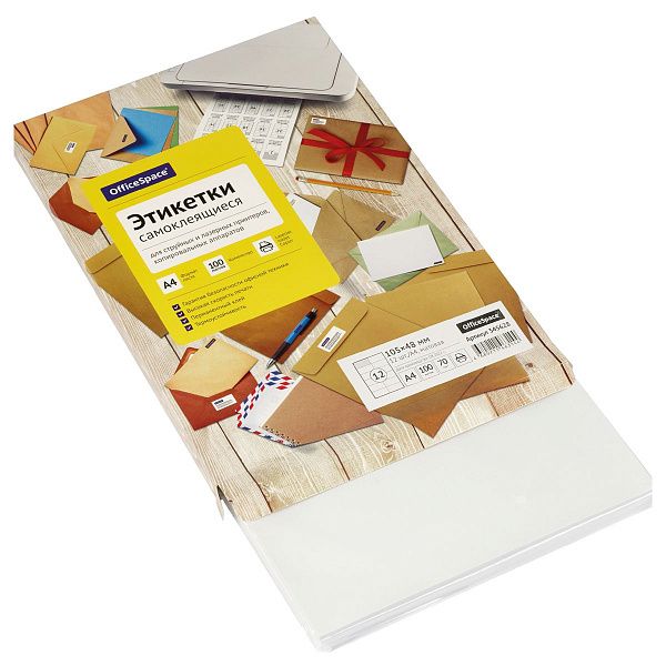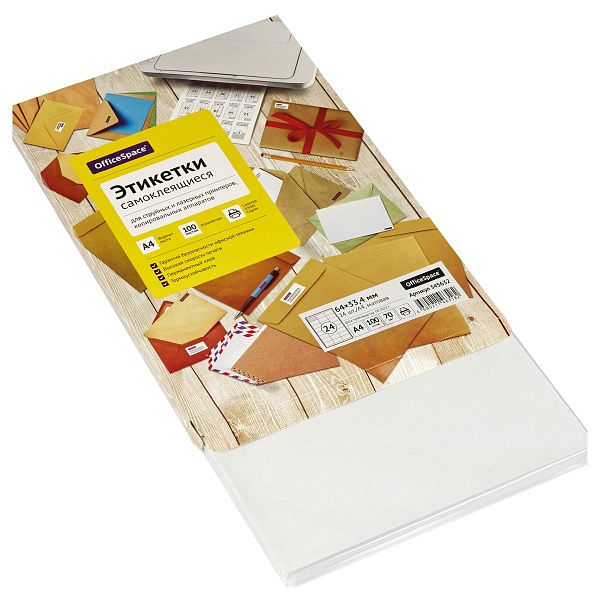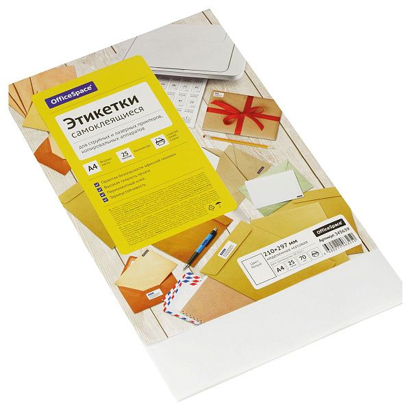 - Этикетки "OfficeSpace, А4 25 листов" легко наклеиваются на любую поверхность — быстро и без лишних усилий.