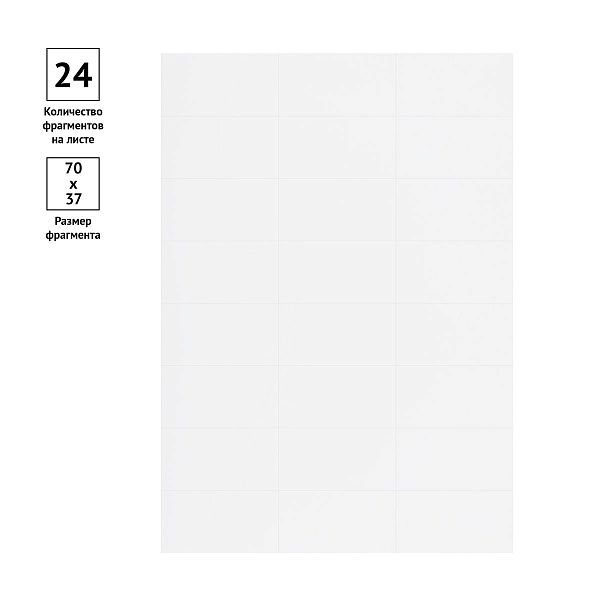 - Доступные варианты: неделеные листы А4 и этикетки с делением на 2, 4, 8, 16, 33, 40 фр., например, "OfficeSpace, 70 г/м²".