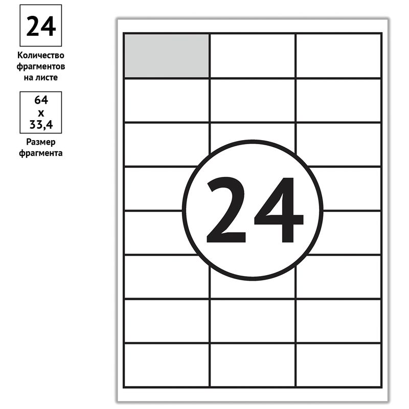 Этикетки самоклеящиеся А4 100л. OfficeSpace, белые, 24 фр. (64*33,4), 70г/м2