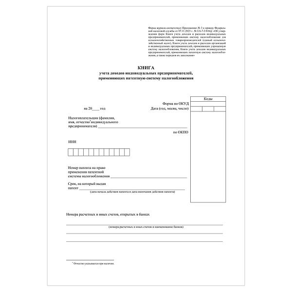 - Книга учета доходов: Используется предпринимателями на патентной системе налогообложения для фиксации только доходной части.