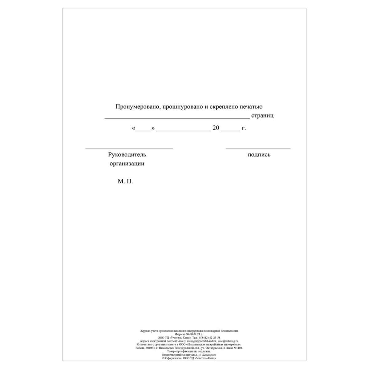 Журнал учета проведения вводного инструктажа по пожарной безопасности А4, 24стр., блок офсетная бумага