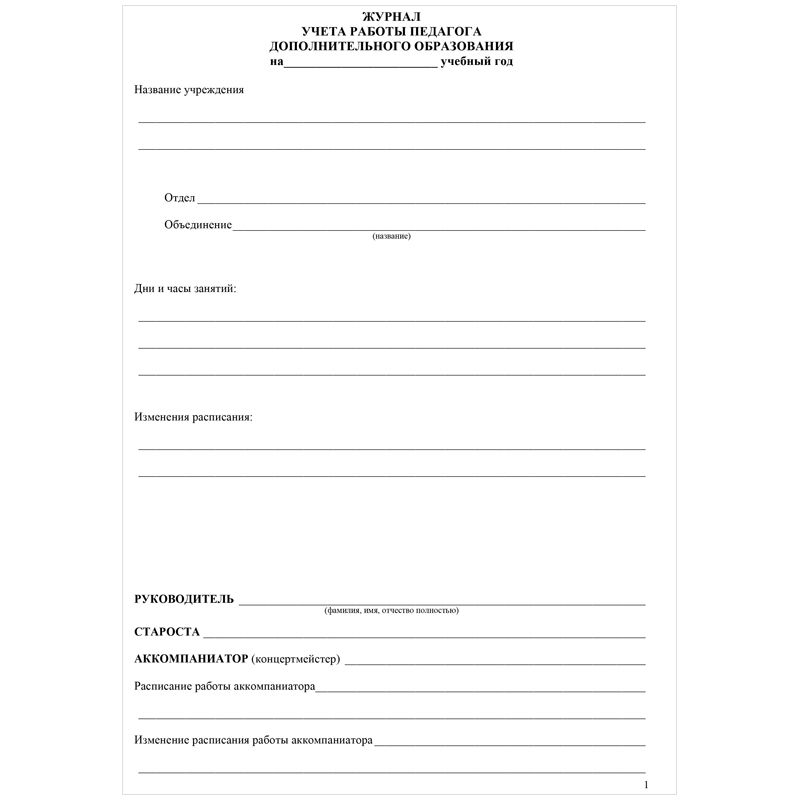 Журнал учета работы педагога дополнительного образования А4, 20л., на скрепке, блок газетный