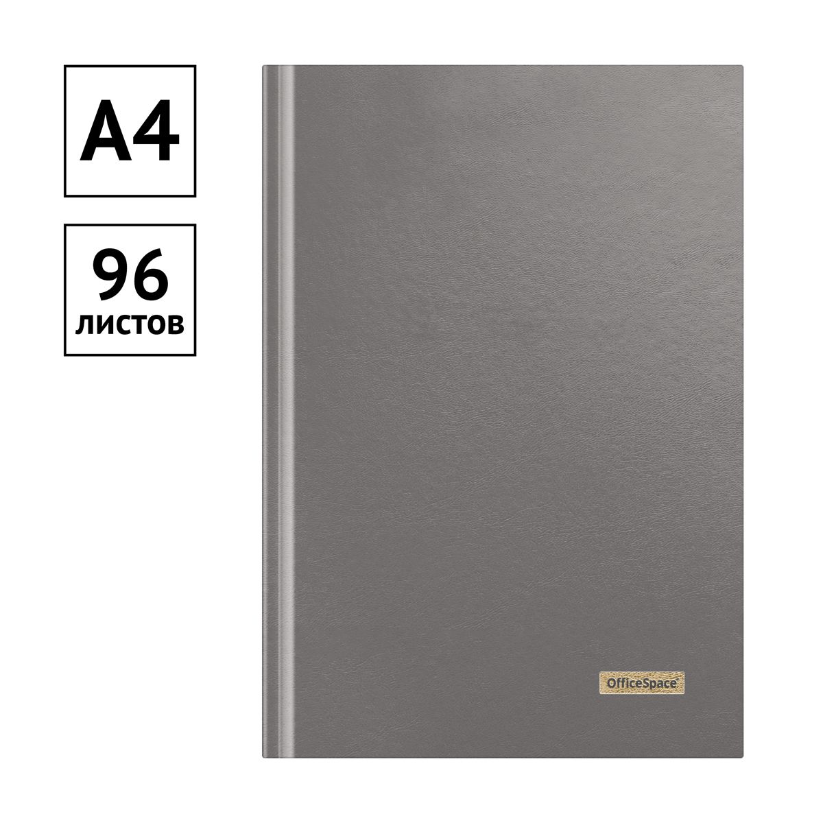 Книга учета OfficeSpace, А4, 96л., клетка, 200*290мм, бумвинил, цвет серый, блок офсетный