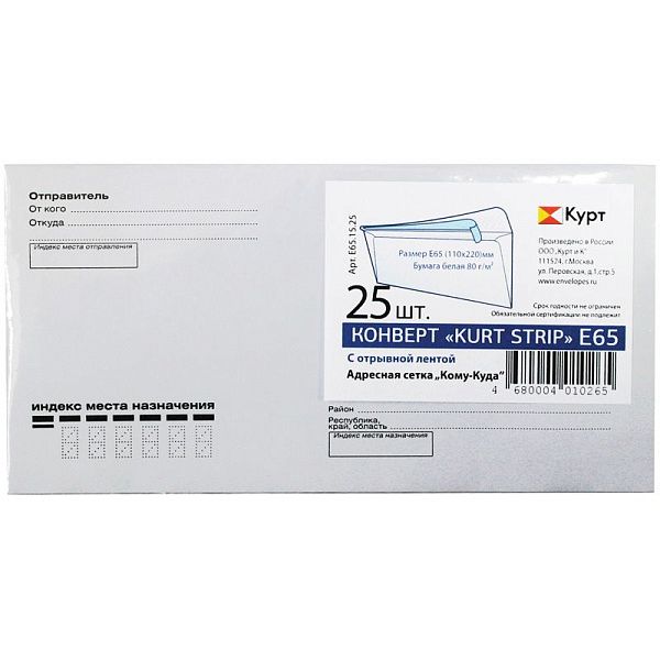 - Конверты доступны в форматах: C4, C5, C6 и E65.