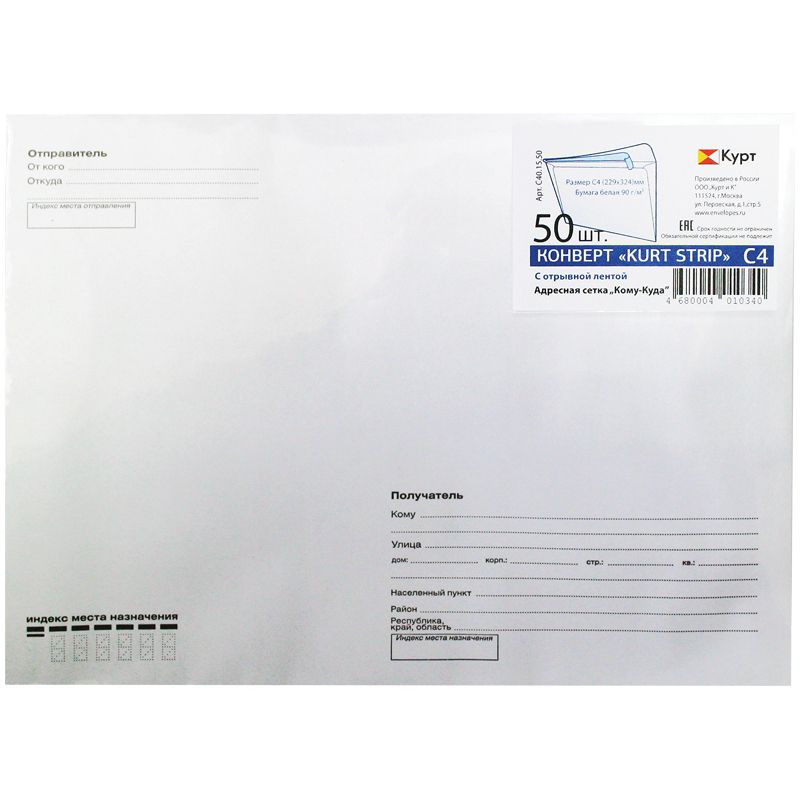 Конверт C4, KurtStrip, 229*324мм, с подсказом, б/окна, отр. лента, внутр. запечатка