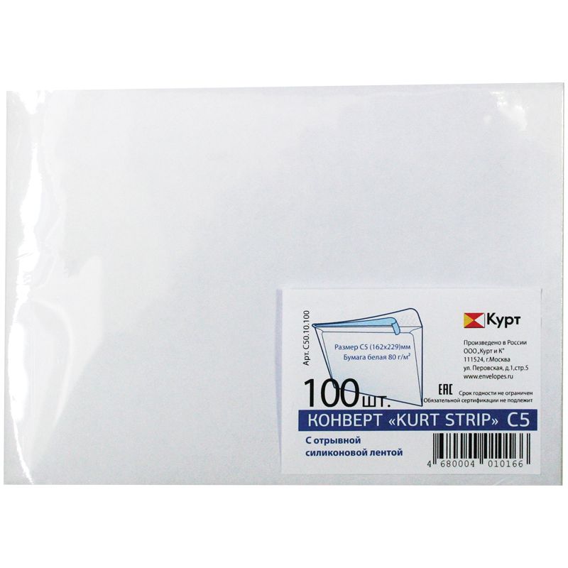 Конверт C5, KurtStrip, 162*229мм, б/подсказа, б/окна, отр. лента, внутр. запечатка