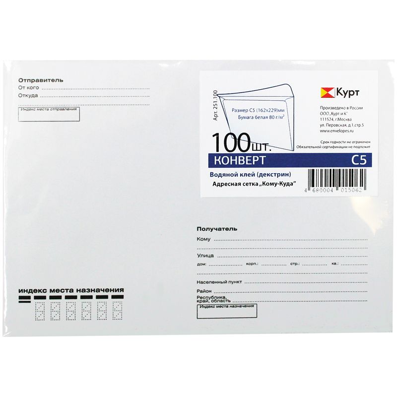 Конверт C5, KurtStrip, 162*229мм, с подсказом, б/окна, кл. край