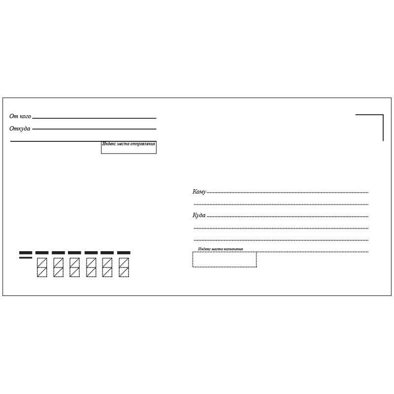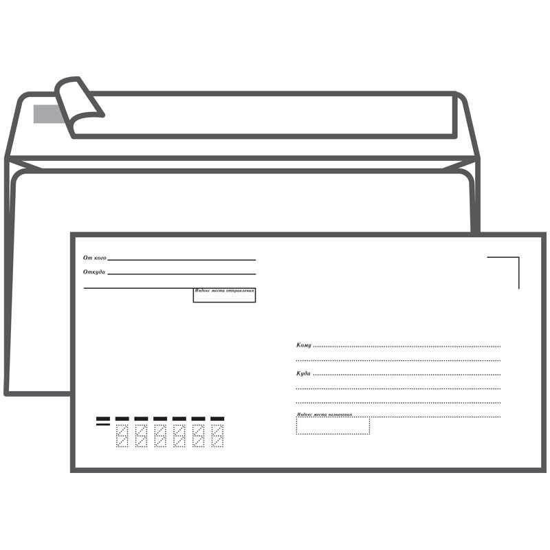 Конверт E65, Ряжская печатная фабрика, 110*220мм, с подсказом, б/окна, отр. лента