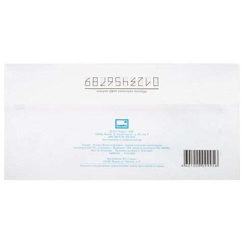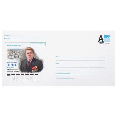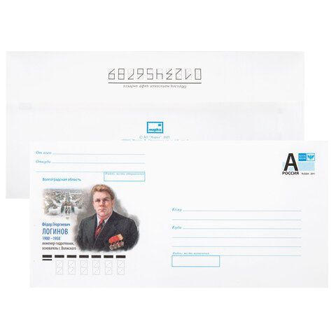 Конверт маркированный ПОЧТА РОССИИ "литера А", E65 (110х220 мм), отрывная лента, "Куда-Кому", 80 г/м2