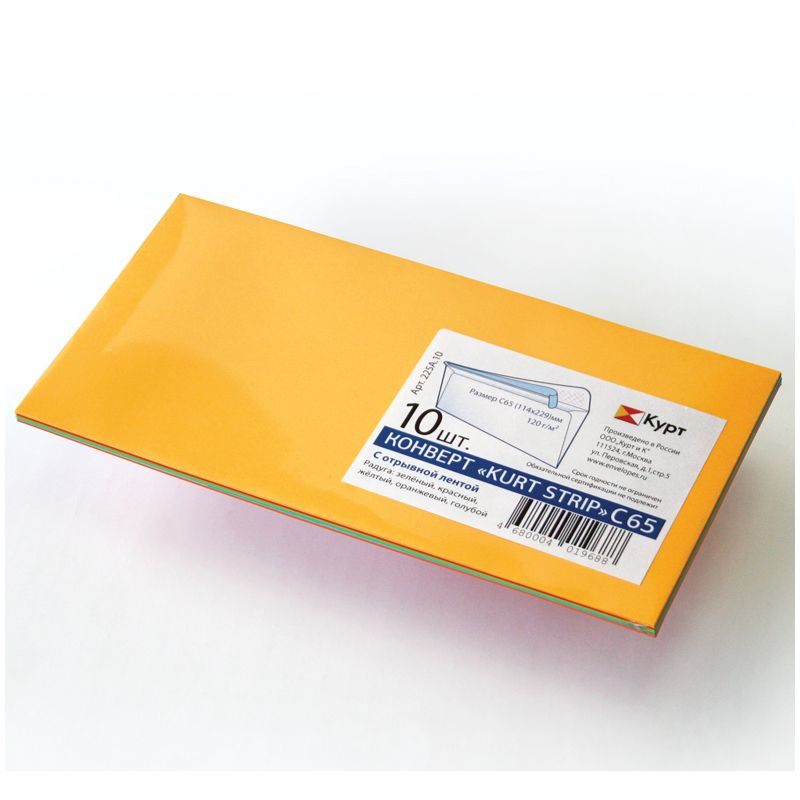 Конверт С65, KurtStrip, 114*229мм, б/подсказа, б/окна, отр. лента, радуга (5цв.*2шт.)