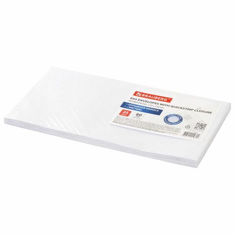Конверты Е65 (110х220 мм), отрывная лента, 80 г/м2, КОМПЛЕКТ 25 шт., внутренняя запечатка, BRAUBERG, 122449