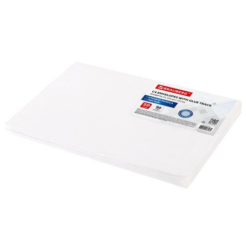 Конверты С4 (229х324 мм), клеевой слой, внутренняя запечатка, 90 г/м2, КОМПЛЕКТ 50 шт., BRAUBERG, 112176, С4НКР-50(BRAUBE